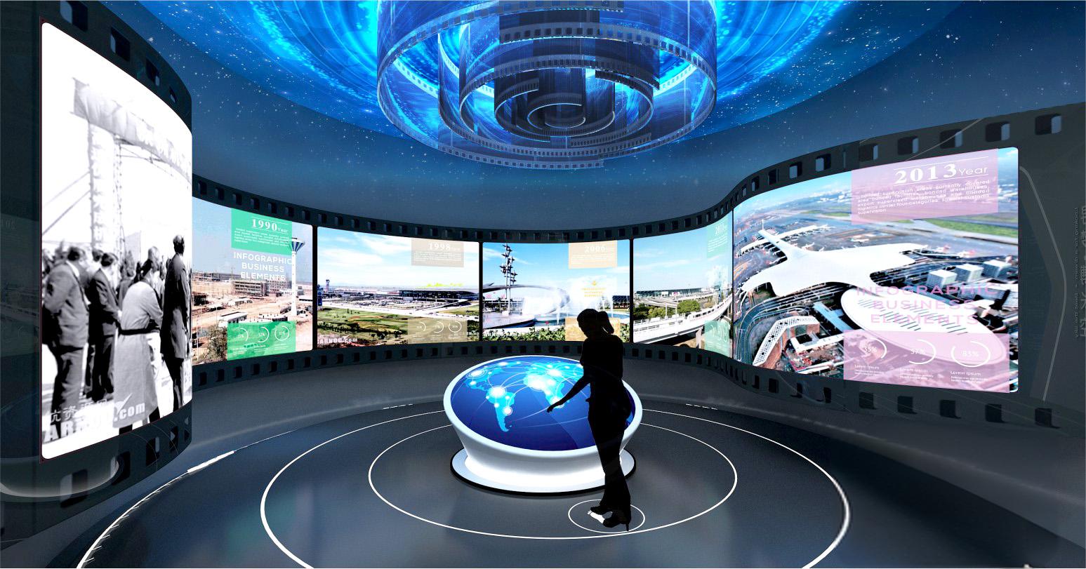 深圳機(jī)場(chǎng)(集團(tuán))有限公司成立1989年5月,1994年5月完成集團(tuán)化改造,1998年4月組建上市公司,“深圳機(jī)場(chǎng)”股票于1998年4月20日在深交所掛牌上市。深圳市機(jī)場(chǎng)(集團(tuán))有限公司是深圳市國資委直管企業(yè),又是深圳市機(jī)場(chǎng)股份公司的控股公司。隨著中國航空服務(wù)的發(fā)展,科技領(lǐng)域的成果在服務(wù)業(yè)中的應(yīng)用,深圳機(jī)場(chǎng)集團(tuán)需要一個(gè)圈方位介紹自己集團(tuán)品牌的展示空間,展廳包括深圳機(jī)場(chǎng)的發(fā)展歷程,機(jī)場(chǎng)服務(wù)體系,我們的航空業(yè)務(wù)和線路,未來機(jī)場(chǎng)的戰(zhàn)略規(guī)劃等。