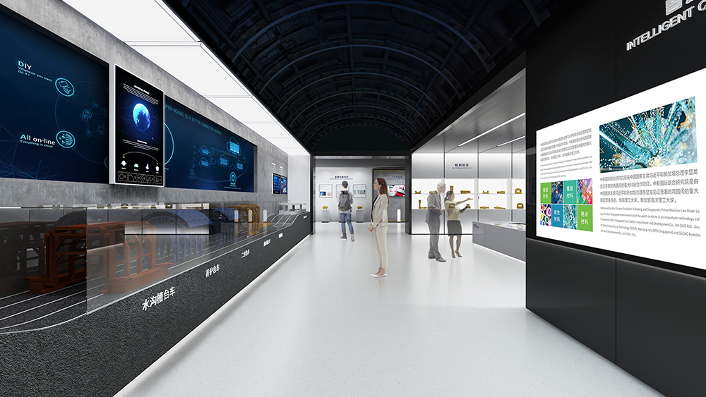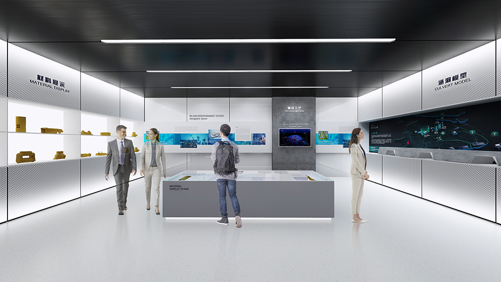 該展廳為深汕西改擴(kuò)建項(xiàng)目第一個(gè)展廳,從最初的材料展示廳,經(jīng)過(guò)深入挖取、精準(zhǔn)定位,逐步定位為樹(shù)立高速公路改擴(kuò)建行業(yè)名片、探討技術(shù)創(chuàng)新模式、促進(jìn)技術(shù)變革創(chuàng)新、及各施工工種施工交底和安全教育體驗(yàn)等多功能工程展示廳。展廳借助多媒體和數(shù)字化技術(shù),結(jié)合各種科技展示系統(tǒng),打造一個(gè)綜合展示空間,為參觀者呈現(xiàn)了一個(gè)前所未有的體驗(yàn)盛宴。